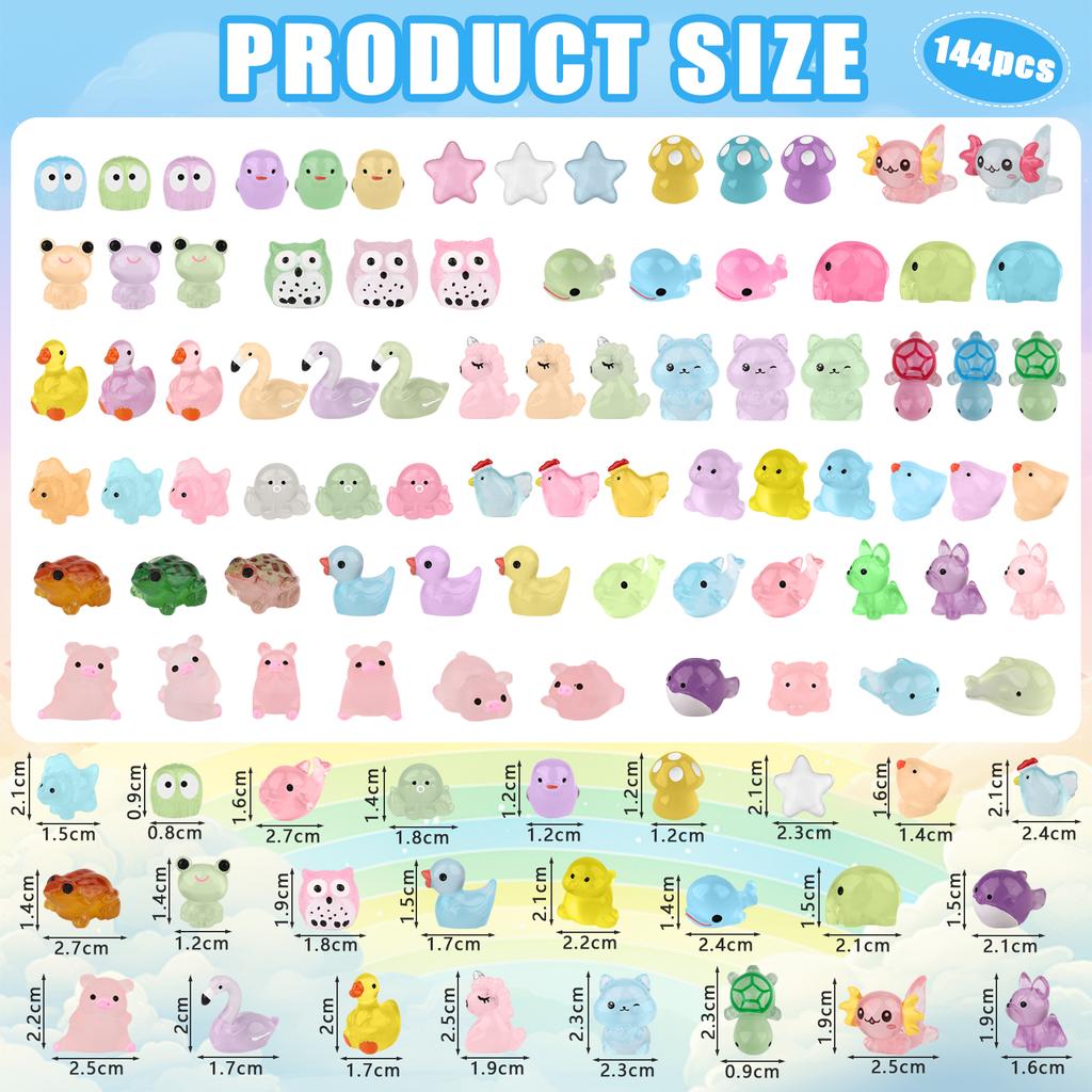 В коплект входит: Вы получите 144 миниатюрных смоляных животных в разных стилях, включая смоляных уток, грибы, лягушек, черепах, динозавров, утят, дельфинов, китов, осьминогов, слонят, морских звезд, щенков, цыплят, белок, сов, жаб, лягушек, поросят, единорогов, фламинго и т. д.. Количество достаточное, формы небольшие и симпатичные, а цвета насыщенные, что вполне достаточно для удовлетворения ваших различных творческих и декоративных потребностей.