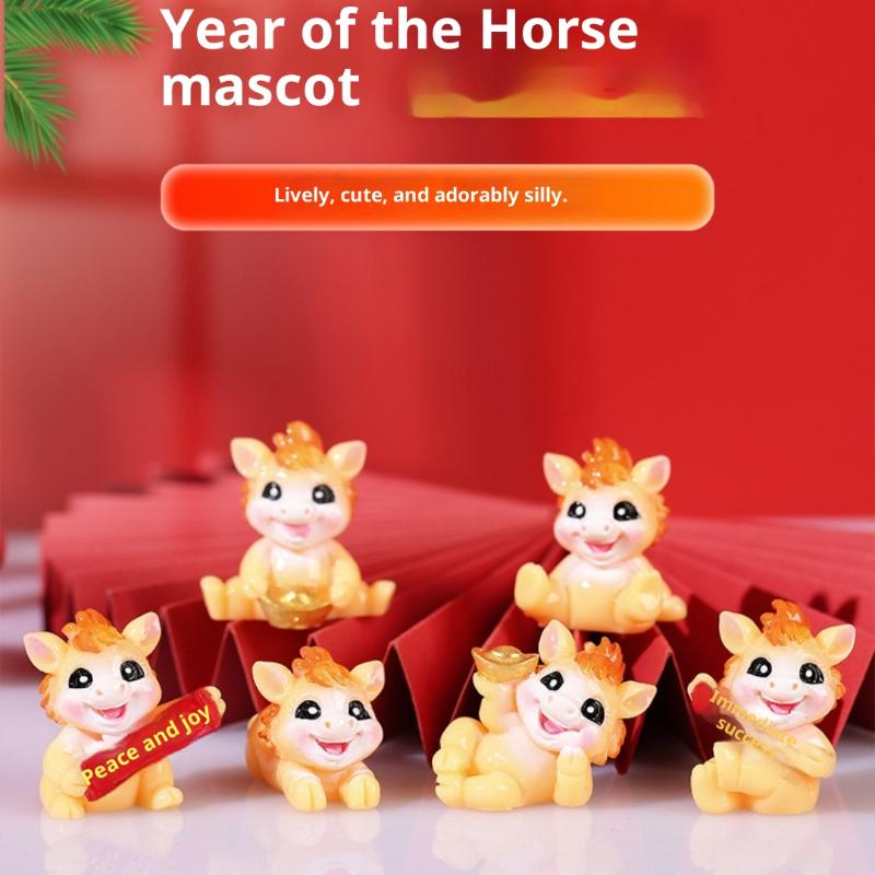 1/2 шт. Реалистичная фигурка-талисман в виде лошади по знаку зодиака из смолы, 2026 год Лошади, декоративные китайские миниатюрные фигурки лошадей