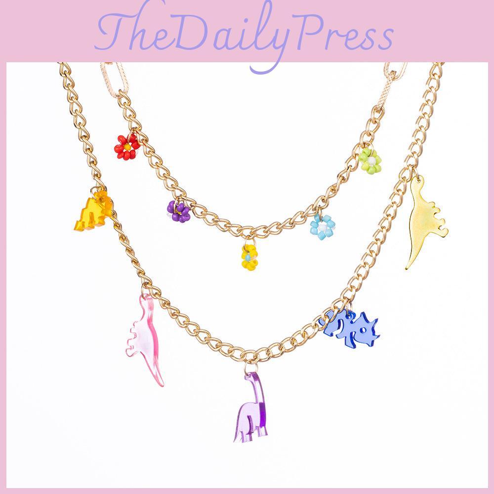 Unique Design: The stylish geometric dinosaur and flower motif makes this necklace a standout accessory that adds a playful yet chic touch to any outfit.
