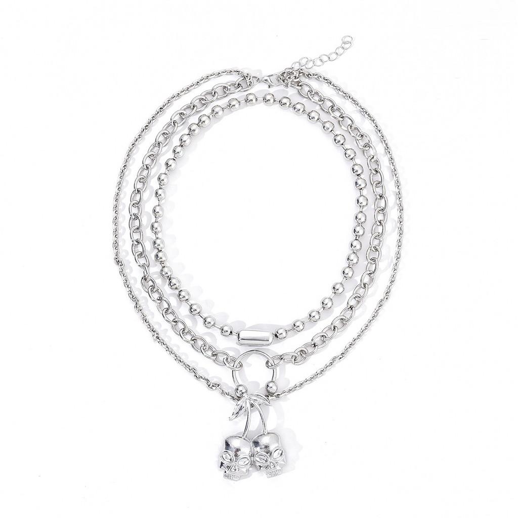 Punk Style Multilayer Skull Cherry Necklace For Women With Zinc Alloy Chain