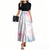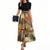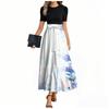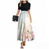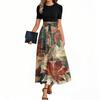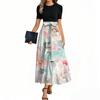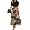Женское элегантное модное повседневное платье с цветочным принтом и поясом, короткими рукавами и круглым вырезом