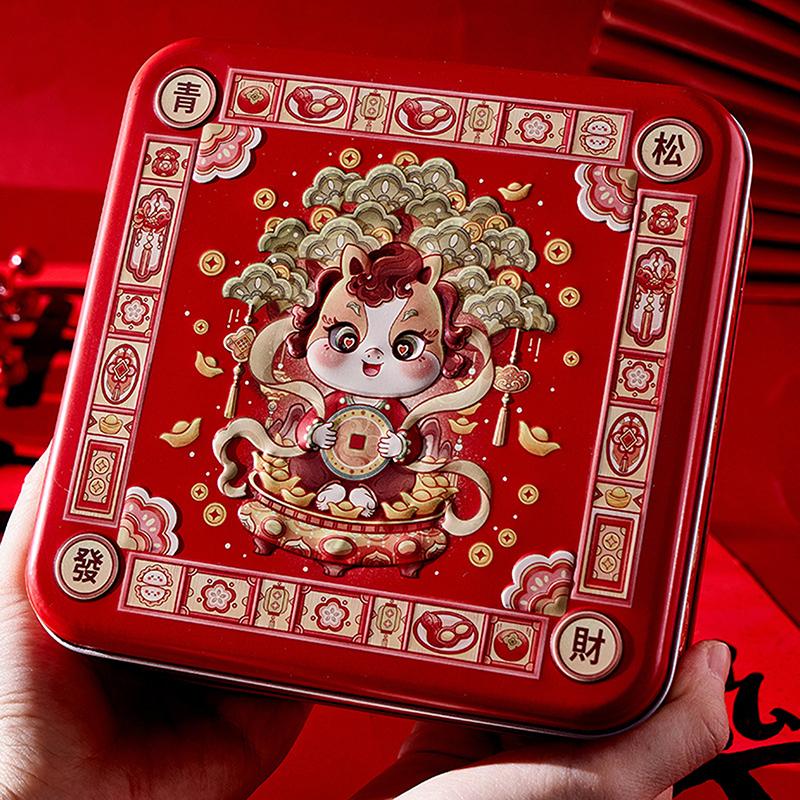 Металлическая коробка для конфет и чая в стиле китайского Нового года, с мультяшным рисунком лошади и панды.