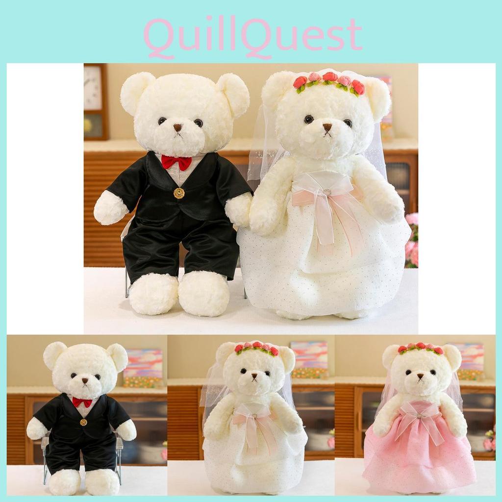 Очаровательные плюшевые свадебные мишки в элегантных нарядах, идеально подходящие для романтического декора