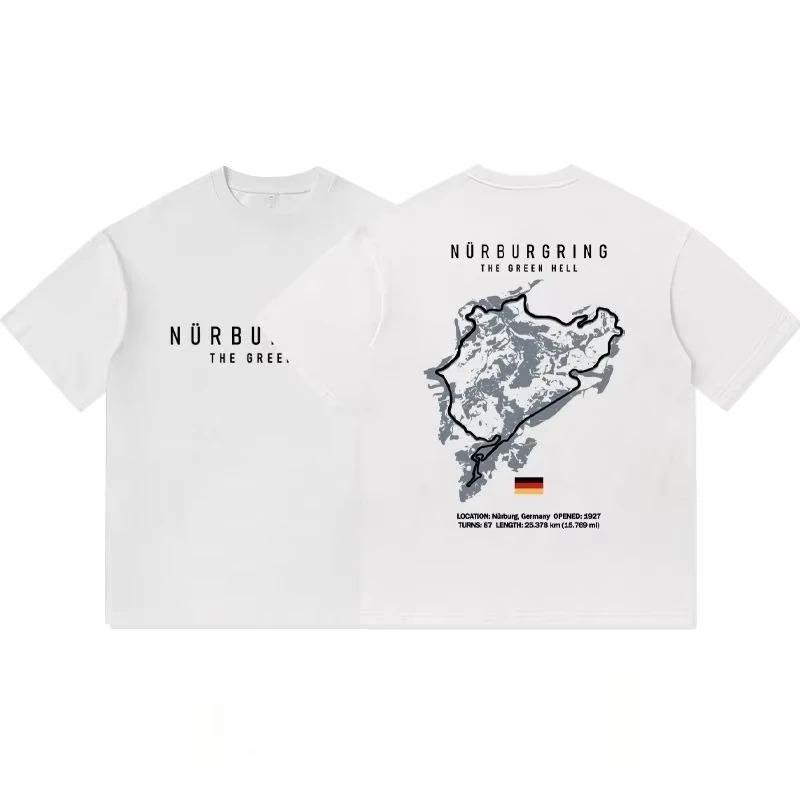 Oversized Short-Sleeve T-Shirt Featuring Nürburgring "The Green Hell" Graphic Print, With Circuit Map & Track Specs, Celebrating German Motorsport