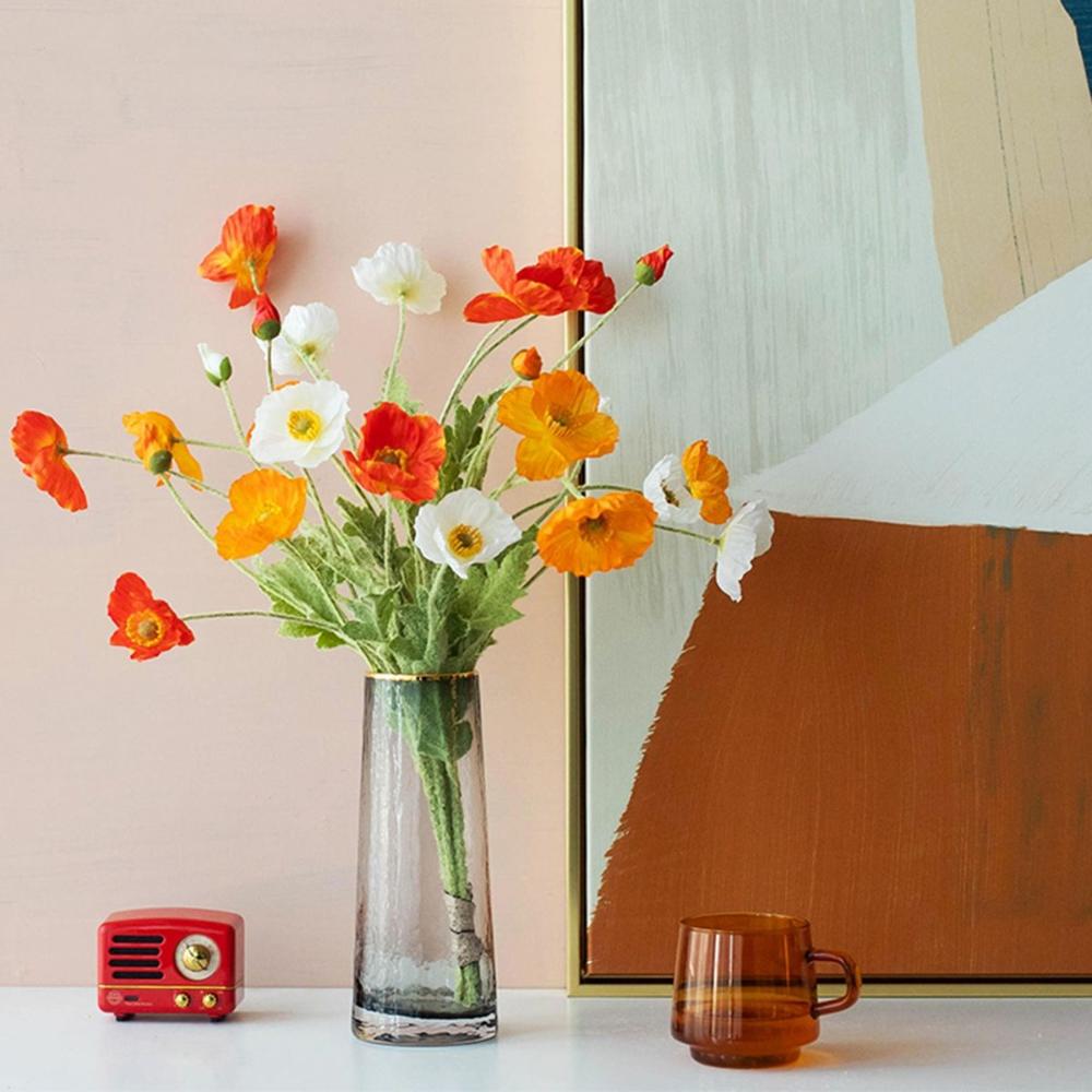 Decoration Real Touch Flocking Stem Realistic Elegant Faux Bouquet Silk Plants Artificial Papaver Rhoeas Fake Poppies Flowers