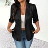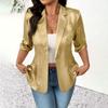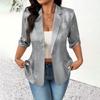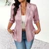 Women's - -Color Cardigan With Notched Collar And 3/4-Length Sleeves