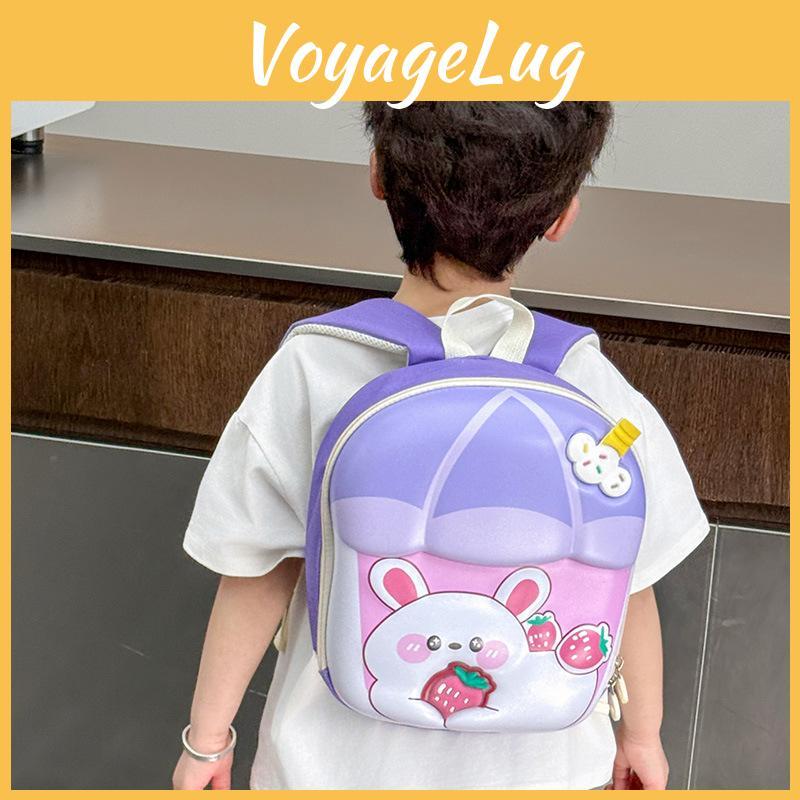 This cartoon bunny-shaped childrens backpack features a lightweight EVA shell, It includes a padded air cushion strap system for comfortable carrying and a polyester lining for durability. Perfect for school use, it combines playful animal patterns with splicing and embossed details. Easy to clean with a damp cloth.