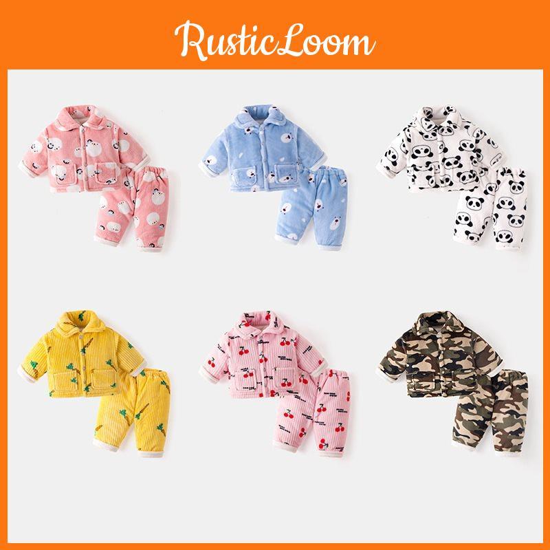Adorable Unisex Winter Homewear Set For Infants Plush Thickened Fleece Pajamas