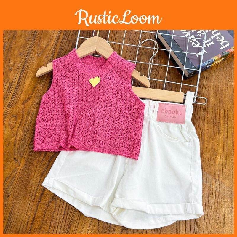 Модный летний комплект для девочек, включающий элегантный топ без рукавов цвета питайи и свежие белые шорты.