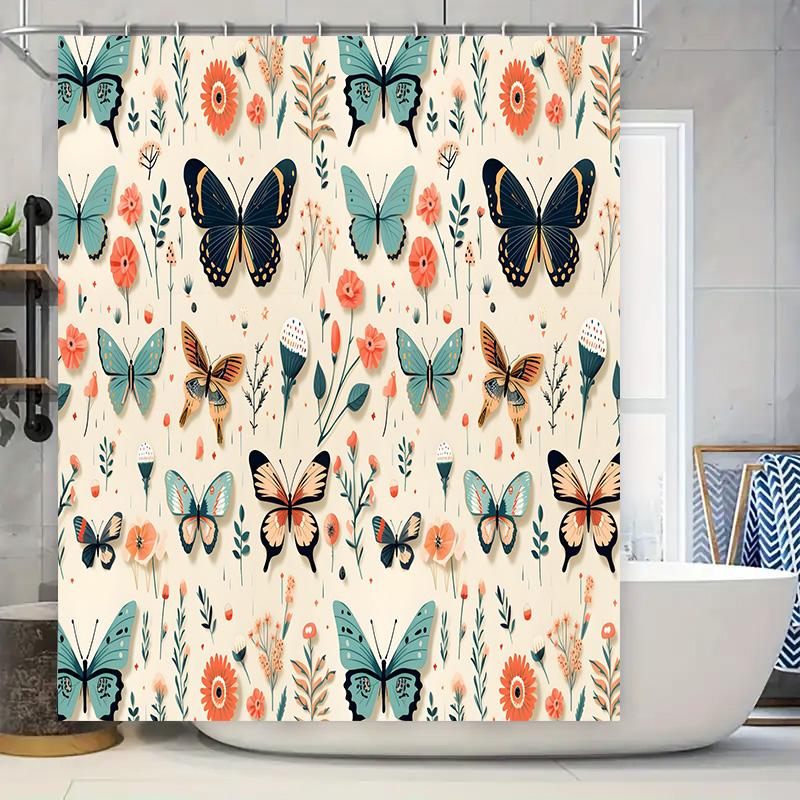 Butterfly Bliss: Vibrant Floral and Butterfly Shower Curtain for a Charming and Nature-Inspired Bathroom Décor