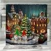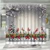 Christmas Shower Curtain, Winter Snowman Santa Claus Gnome Farm Farmhouse Cartoon Truck Christmas Tree Snowflake Bathroom Decor