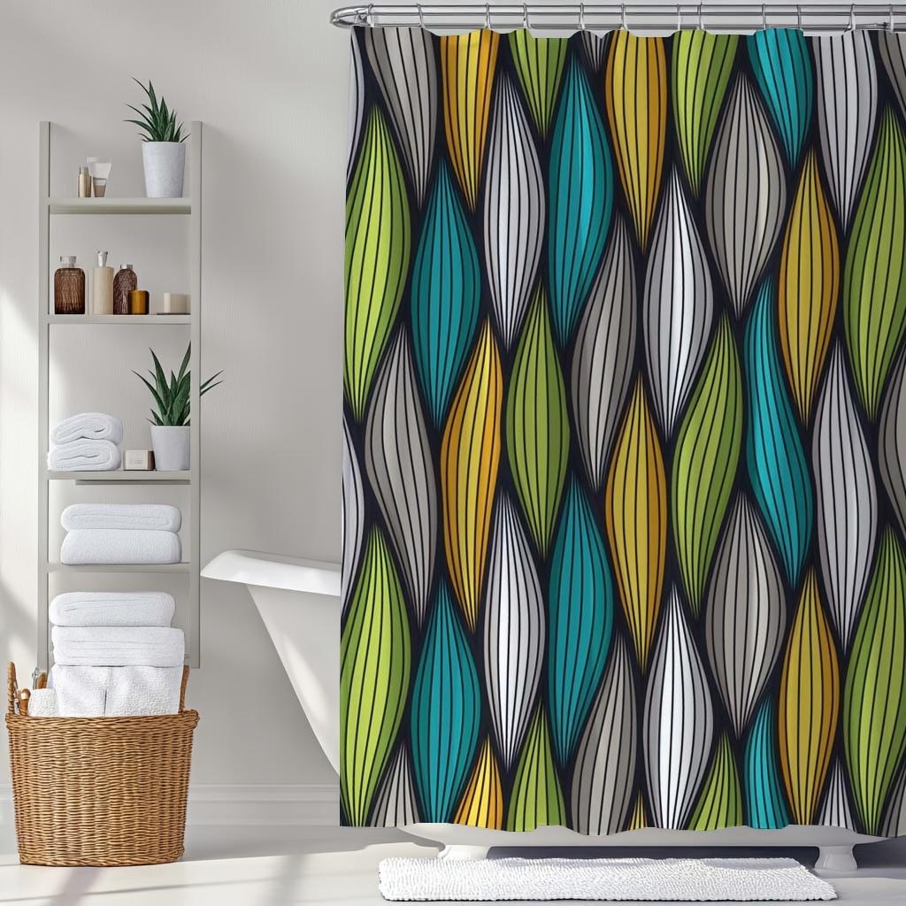 Vibrant Leaf Pattern Shower Curtain – Reversible Colorful Woven Design, with Hooks for Modern & Artistic Bathroom Decor