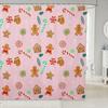 Шторка для душа на рождественскую тематику с рисунком леденцов-тросточек Розовая и коричневая цветовая гамма для аксессуаров декора ванной комнаты