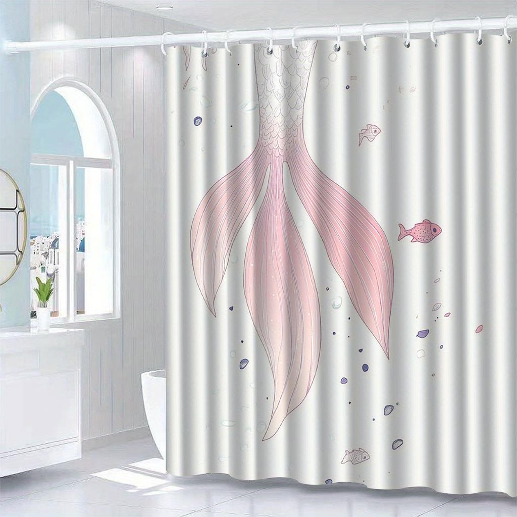 1pc fish tail pattern shower curtain with hook, bathroom partition, bathroom accessories, home decoration