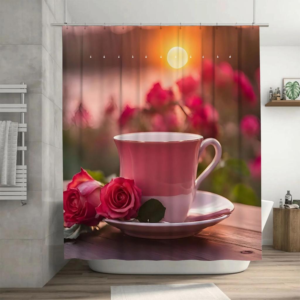 Romantic Tea & Roses Art Shower Curtain - Modern Waterproof Design for Stylish, Unique & Cozy Bathroom Decor Experience