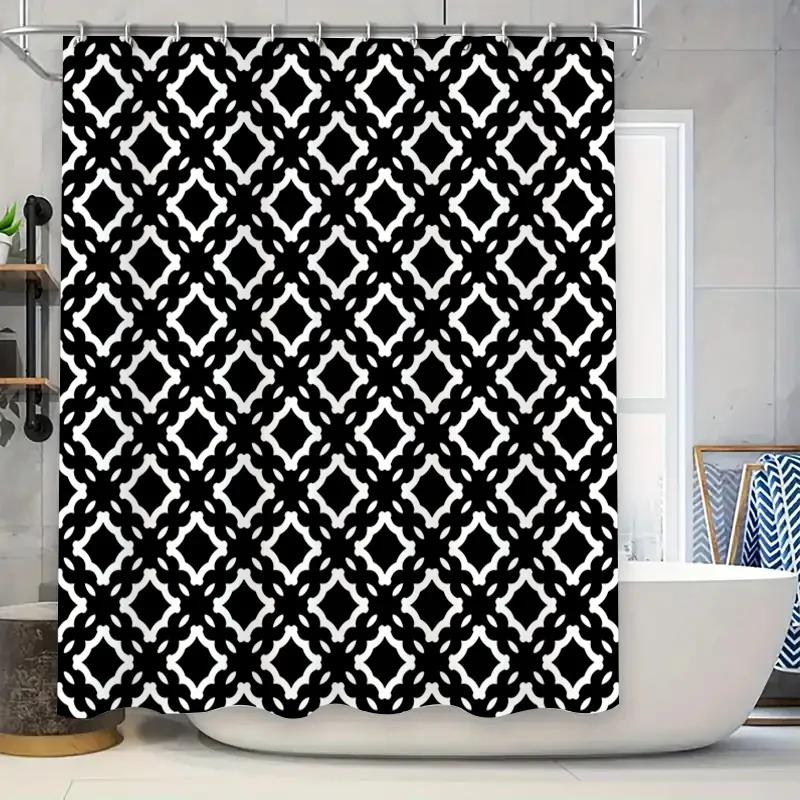 Black White Geometric Shower Curtain for Bathroom Decor Water-Resistant Fabric, No-Slip Grip Size: 72 x 84 inches (183cmx213cm)