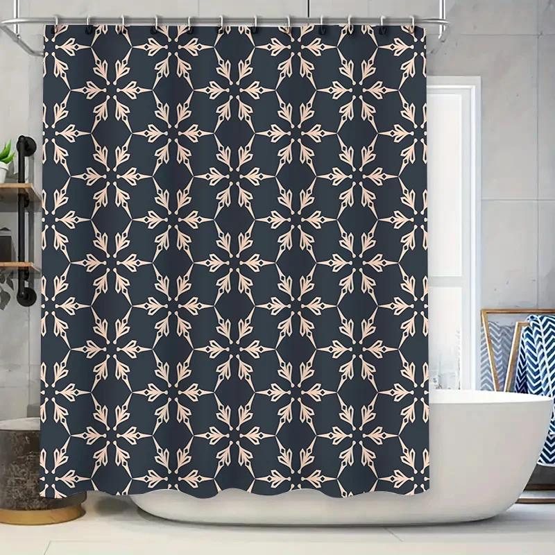 Modern Floral Bath Curtain Set Navy White Geometric Pattern Shower Curtain with Metal Eyelets for Bathtub Decor — купить товар онлайн с бесплатной доставкой по всему миру!