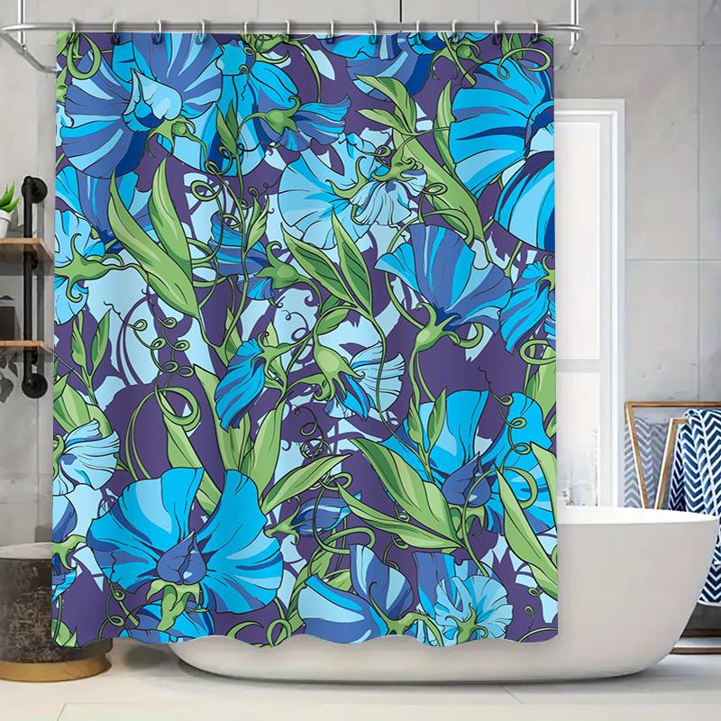 Blue Green Floral Shower Curtain Modern Home Decor in Vivid Colors for Bathroom Decoration (80 characters)