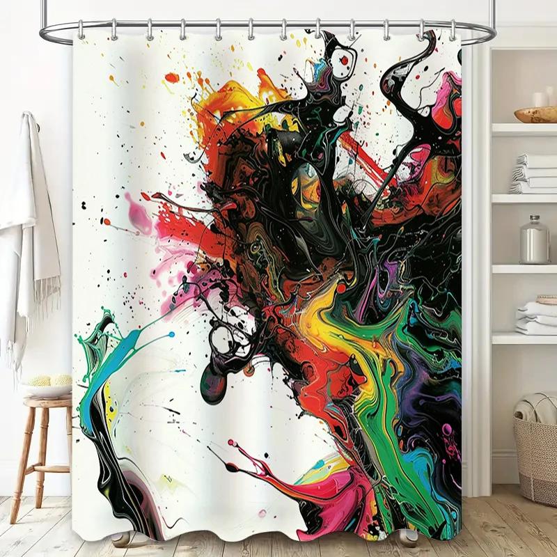 Brightly Colored Swirls Shower Curtain for Bathroom Decor Waterproof Fabric with Hooks Set Abstract Watercolor Floral Design in