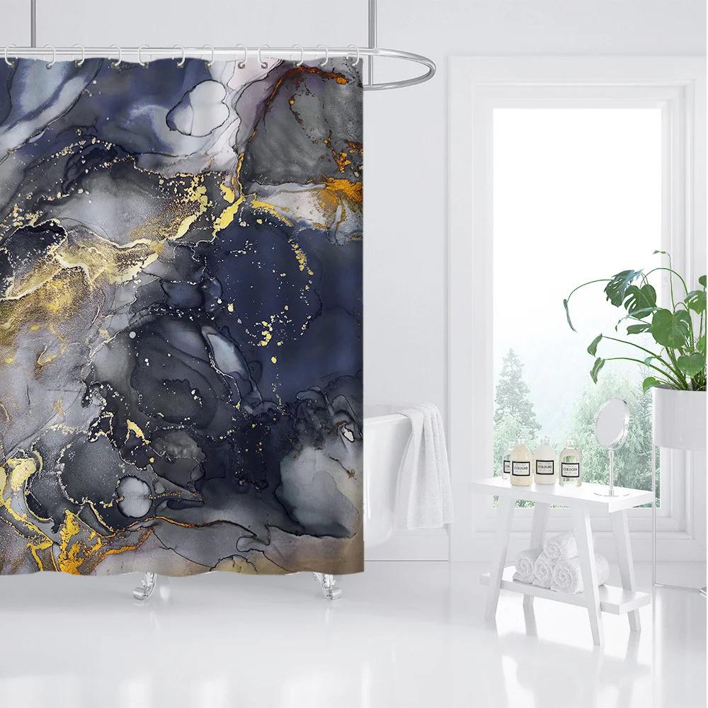 ~O~Скандинавская Роскошная Мраморная Шторка для Душа - Сине-Серая и Золотая Абстрактная Цветочная, Полиэстер, Современный Декор для Ванной, Перегородка для Туалета