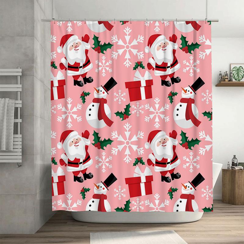 GAETU Festive Christmas Shower Curtain Snowman Holiday Bathroom Decor Waterproof Fabric Xmas Pattern Backdrop Festive Home Dec