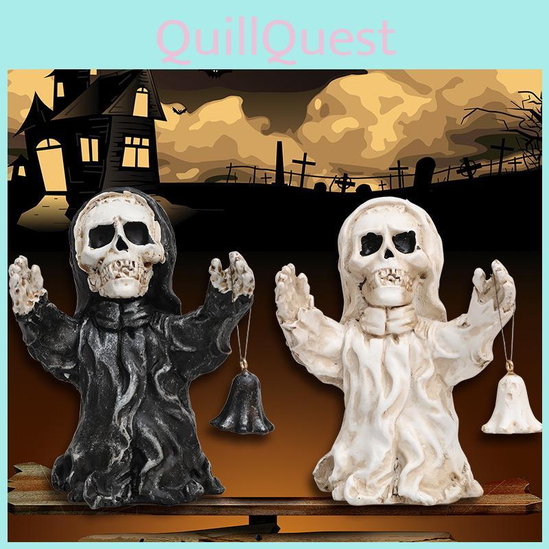 Уникальное Хэллоуинское полимерное украшение в виде скелета-призрака с ручным колокольчиком для жуткой атмосферы