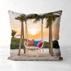 Цветочные подушки для качелей, дизайн «Закат на пляже с глицинией», полиэстеровая наволочка, декоративная подушка для дивана, подушка для изголовья