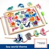Деревянная двухсторонняя доска с бусинами, с игрой «Рыбалка» и внешним видом морских животных для детской игровой комнаты, домашнего развлечения
