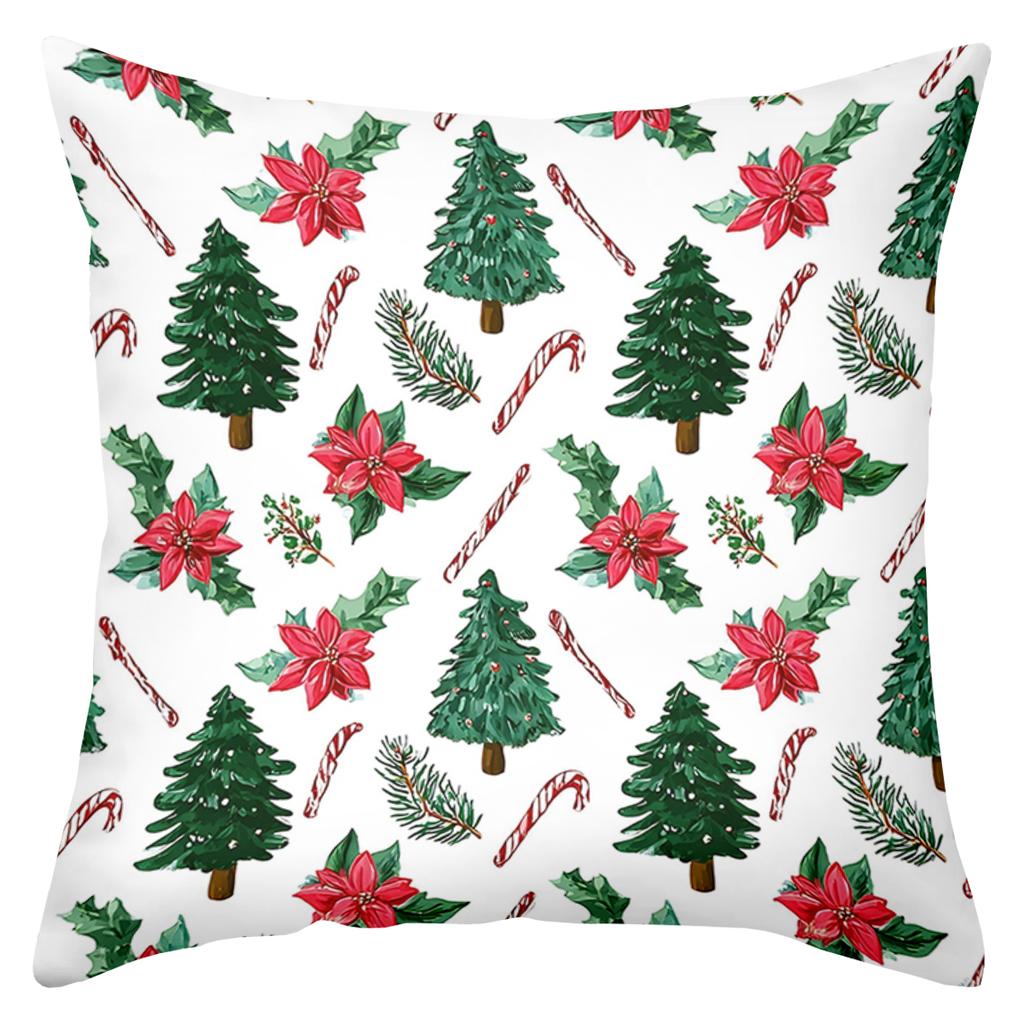 1 Pieces Christmas Tree Candy Cane Poinsettia Pattern Pillow Polyester pillowcase, sofa decorative cushion cov Headboard Pillow