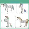 Большая красочная фигурка лошади-единорога радужной расцветки из ПВХ, коллекционная модель мифического существа