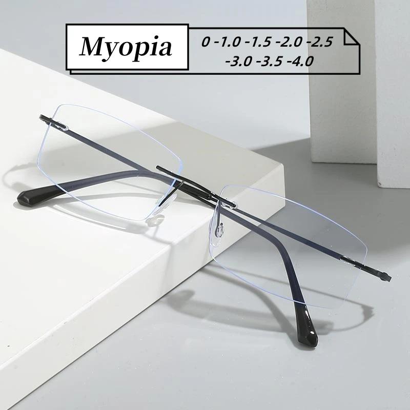 Ladies Sqaure Frameless Myopia Glasses With Diopter Ultralight Anti Blue Lamp Near Sight Eyeglasses Prescription 0 -1.0 To -4.0
