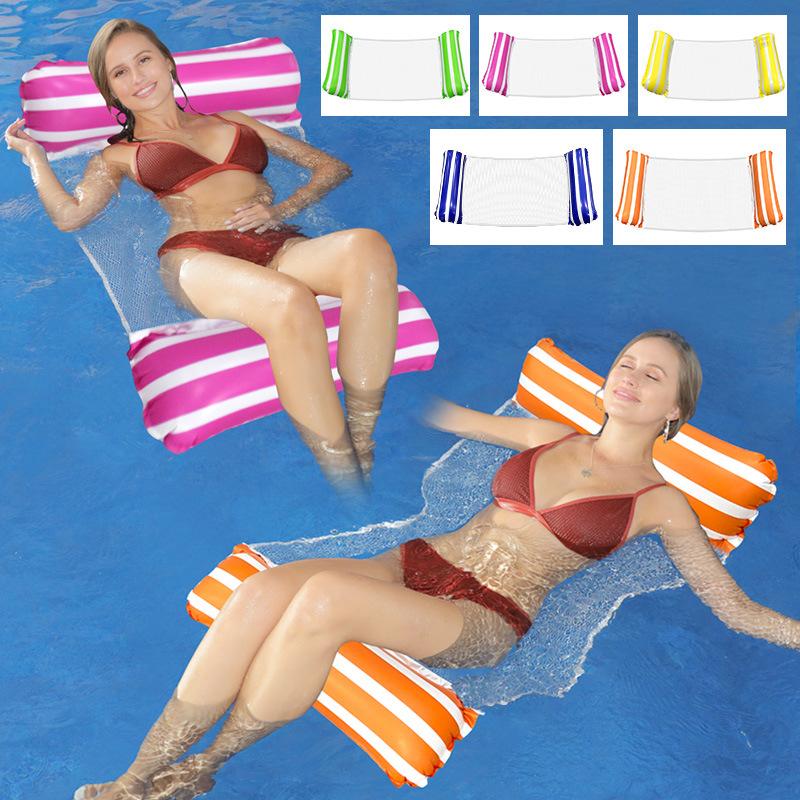 New Inflatable Floating Row Foldable Inflatable Lounge Chair Floating Bed Striped Net Floating Drainage Swimming Pool Hammock — купить товар онлайн с бесплатной доставкой по всему миру!