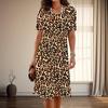 Изящное повседневное платье с леопардовым принтом для женщин, летнее, весеннее, с коротким рукавом, круглым вырезом, модное — купить товар онлайн с бесплатной доставкой по всему миру!