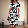 Изящное повседневное платье с леопардовым принтом для женщин, летнее, весеннее, с коротким рукавом, круглым вырезом, модное