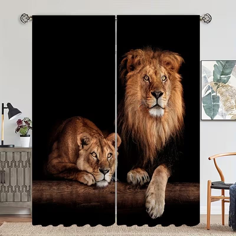 2PC Lion & Lioness Curtains - Majestic Wildlife Print Window Drapes for Living Room Bedroom Decor — купить товар онлайн с бесплатной доставкой по всему миру!