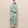 Women's Retro Court Style V-neck Dress with Lace-up Waist, Lantern Sleeves, Floral Print, and Large Hem - 2026 Collection — купить товар онлайн с бесплатной доставкой по всему миру!