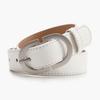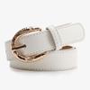 This women fashion belt features a PU material strap with a polished alloy pin buckle, measuring . Designed for versatility, it complements denim and casual wear, adding a touch of elegance to daily outfits. Ideal for winter fashion ensembles, it supports personalized customization. Wipe clean with a damp cloth to maintain its sleek appearance.
