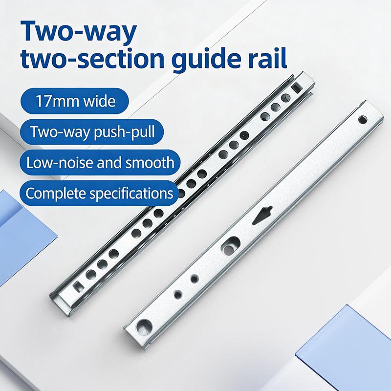 2Set Smooth Glide Bearing Drawer Slides 17Mm Wide Two Way Slide Drawer Glides 8"-17" Hardware Accessories Drawer Rail