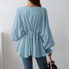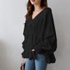 Simple V-Neck Drawstring Scarf Irregular Autumn Women's Shirt Loose Design Casual Long Sleeve Shirt Women's Fashion