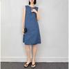 Women's Blue Patchwork Denim Boat Neck Summer Dress
