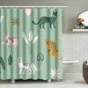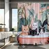 Cute Cat Plant Pattern Shower Curtain Woodland Forest Animal Bathroom Decor Washable Waterproof Home Textile