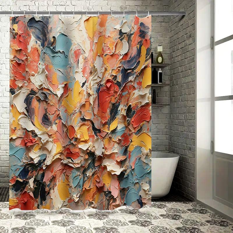 Colorful Abstract Bath Curtain Home Decor Shower Liner for Bathroom Accessories Set in White Bathtub Surrounding Area Tonal Pale