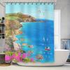 unframed Mediterranean Coastal Shower Curtain Sea View Ocean Decor Beach Themed Bathroom Fabric Waterproof Home Decor Artistic P