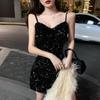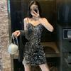 Step into the spotlight with this stunning little black dress, designed to make a lasting impression at any nightclub or party. This sexy, slimming piece features a dazzling collection of sequins that catch the light with every movement, highlighting your silhouette beautifully. Crafted from luxurious suedette, its strappy design adds an extra touch of allure, ensuring you feel confident and glamorous all night long. Perfect for women who want to combine elegance with a touch of extravagance.