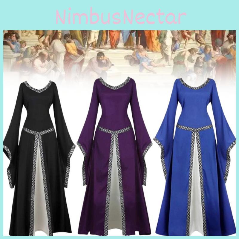 Это средневековое платье для женщин имеет винтажный длинный дизайн с регулируемыми шнуровками.. Изготовлено из смесовой полиэстеровой ткани, подходит для размеров от S до XXXL. Его универсальный стиль подходит для косплея, тематических вечеринок или исторических реконструкций.. Для сохранения внешнего вида протирайте влажной тканью.
