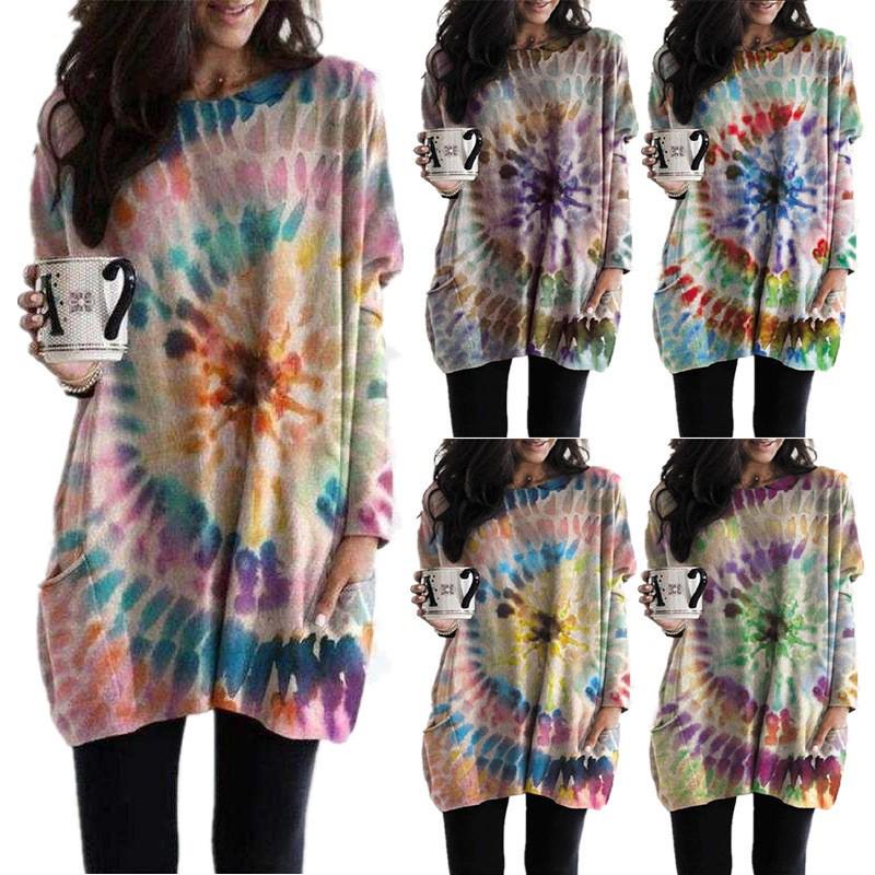 2026 Autumn/Winter Women's Cross-border Printed Spiral Batwing Sleeve Hoodie Dress