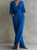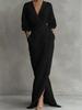 Это макси-платье сочетает в себе элегантность и комфорт благодаря однотонному дизайну и выгодному V-образному вырезу.. Изготовлен из высококачественного полиэстера, идеально подходит как для повседневных, так и для официальных случаев.. Длинные рукава добавляют нотку утонченности, а удобный карман на талии обеспечивает практичность, не жертвуя стилем.. Это универсальное платье — незаменимая вещь в любом гардеробе, которая обещает сделать вас одновременно шикарной и непринужденно стильной.