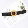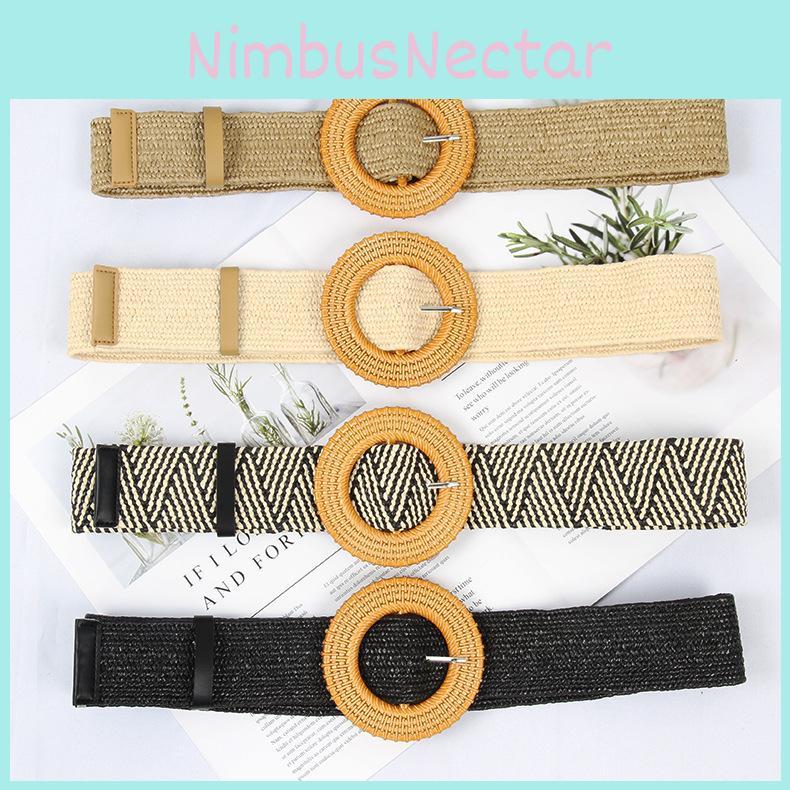 Womens Woven Cotton Linen Waist Belt With Large Round Buckle For Summer Beach Outfits