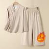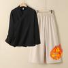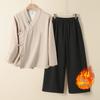 Women's Autumn/Winter Cotton Linen Hanfu: Velvet-Lined Chinese Style Long Sleeve Cardigan Monk Robe for Tea Ceremony