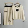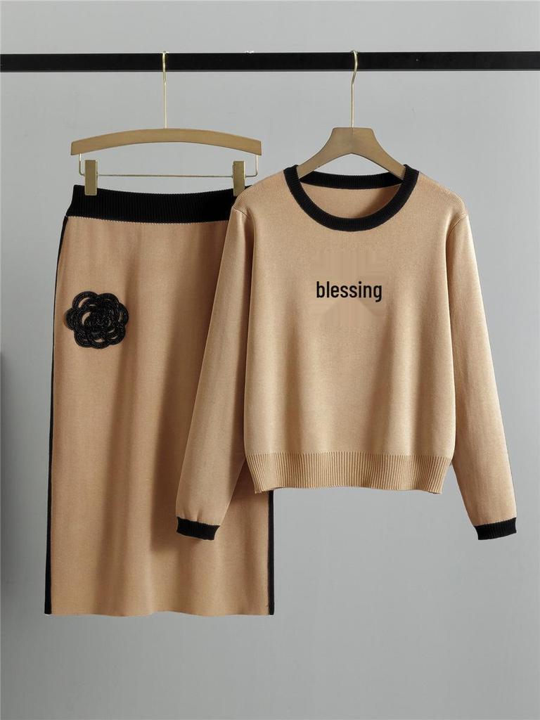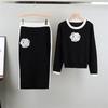 Женский корейский вязаный комплект с камелиями: Элегантный топ с круглым вырезом и облегающая юбка - комплект из двух предметов — купить товар онлайн с бесплатной доставкой по всему миру!